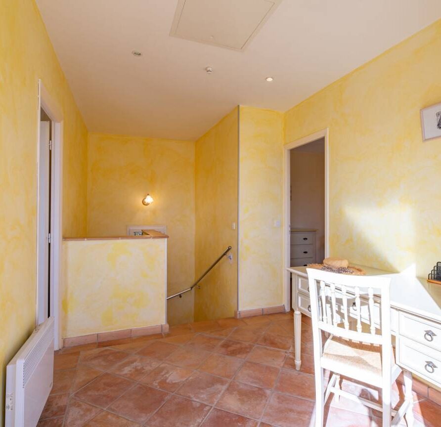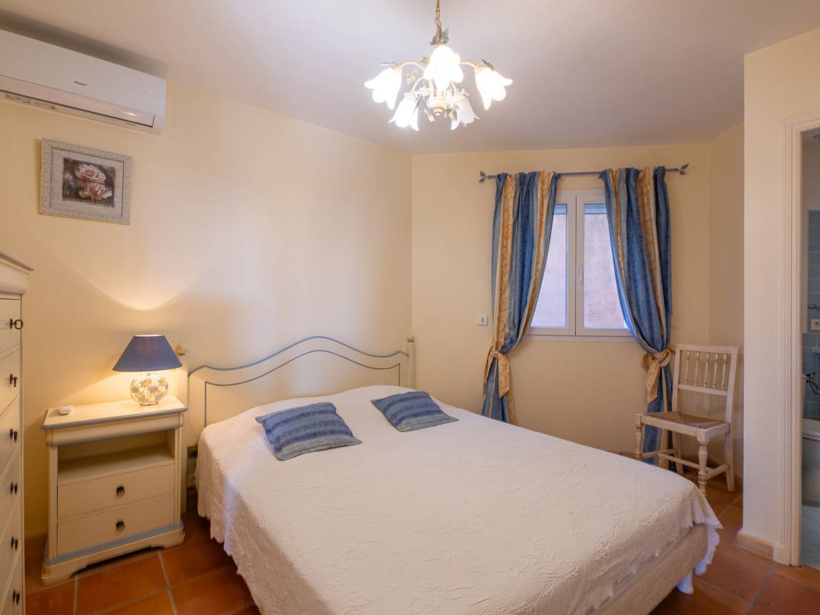 À l’extérieur, le cadre fait la différence. Le terrain clos de 1800 m² accueille un jardin méditerranéen agréable, avec plusieurs espaces pour se poser selon l’envie du moment. La piscine privée s’intègre parfaitement dans l’ensemble, accompagnée d’une grande terrasse, d’un coin repas et d’un barbecue. Un terrain de pétanque vient compléter l’expérience pour des moments simples en fin de journée.